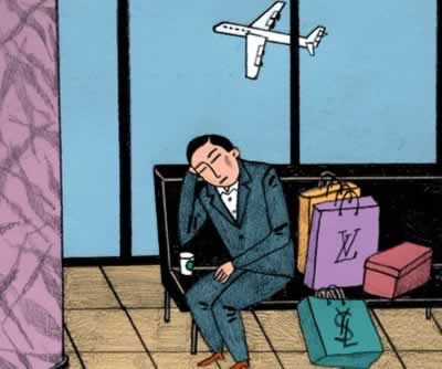 What is he to do? He still has his ticket, safely tucked inside his suitcoat—he reaches into the jacket to feel the envelope, to make sure. He can take the flight, call someone to pick him up at his destination-since he cannot even afford bus fare-conduct his business and fly home. But in the meantime he will have to do something about the lost credit cards-call home, have his wife get the numbers out of the top desk drawer, phone the card companies-so difficult a process, the whole thing suffocating. What shall he do?