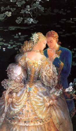王子倾身向穿着猩红色高跟鞋的姑娘,