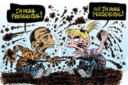 第二个习惯用语是:mudslinging。我们都知道mud是泥巴,而sling是“投掷”的意思,所以 mudslinging可不就是扔泥巴吗?往人身上扔泥巴,或者给人脸上抹黑,不就是污蔑那人吗?政客有时会在选民中说污损政敌信誉形像的话,而遭到攻击的那方也会针锋相对,指控那些话是mudslinging, 也就是“恶意中伤的话或者污蔑人的不实之词”。