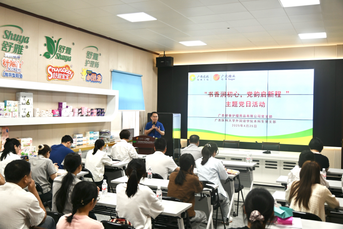 tyc522cc太阳成集团本科生党支部与广西舒雅护理用品有限公司党支部开展第二次“校企携手促发展 支部共建创新篇”主题党日活动暨“书香润初心,党韵启新程”主题党日活动