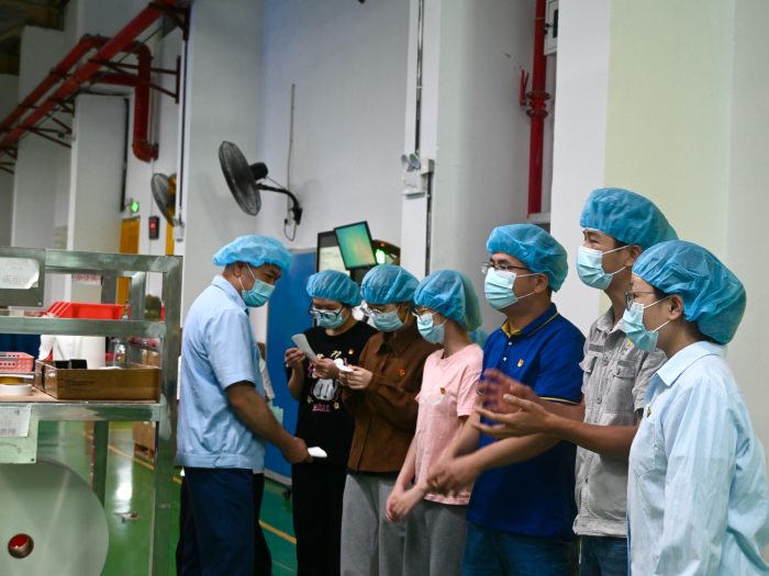 在工厂工作人员带领下,党员们参观了生产车间与研发中心,深入了解企业生产流程、产品研发、企业文化及发展历程,增进了对实体经济和国有企业的认识。