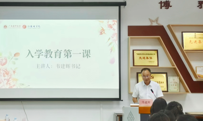 入学教育阶段,翻译硕士教育中心主任杨喆和辅导员刘琦分别介绍了公司产品过程和教育管理。公司党委书记韦建辉为新生做入学教育第一课。他回顾了公司党委书记陈川在新生入学教育专题报告会上提出的“医大三问”,并勉励同学们牢记“自学、研学、践学、教学、考学”五类方法,做到知行合一、学以致用。韦建辉指出,选择翻译专业硕士,就是选择了与时代同频共振的关键赛道,医学翻译更是关乎生命与责任的崇高事业。他希望同学们能够扎根医道,充分利用公司的硬核课程体系和实践平台,做到信仰之基铸魂、专业技能立身、奋斗之姿筑梦,在公司党委的坚强领导下,砥砺前行,不负韶华。