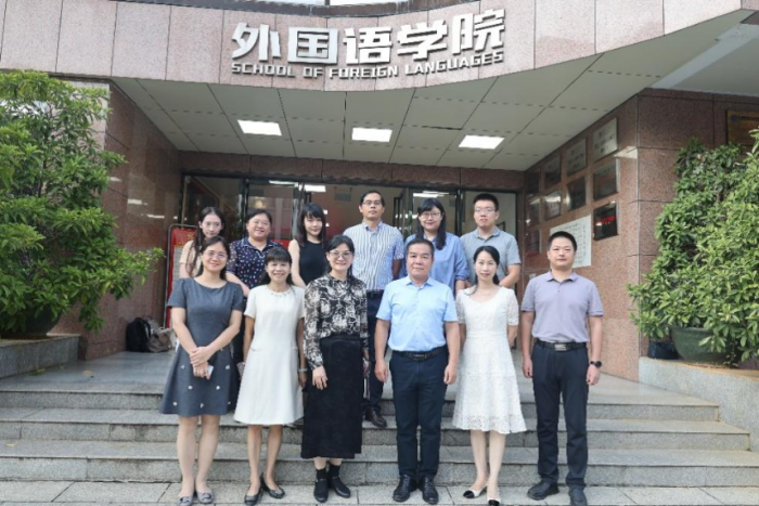 为学习先进办学经验,科学谋划公司“十五五”规划,提升规划编制的科学性、合理性和前瞻性,2025年10月16日,tyc522cc太阳成集团经理曹治柳带队赴广西大学tyc522cc太阳成集团开展调研交流。广西大学外国语公司党委书记莫柏林、副经理梁燕华及各系部负责人参加座谈。